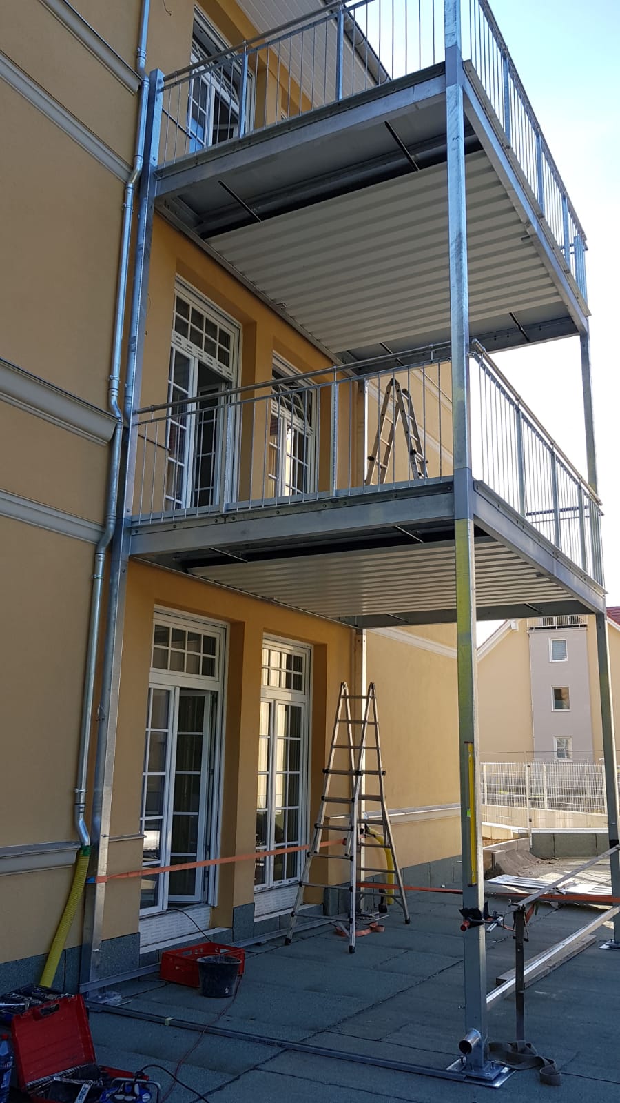 Zu unserer Angebotspalette gehören auch Industriegeländer wie zum Beispiel Absturzsicherungen für Arbeitsbühnen oder Rammschutz-Geländer.